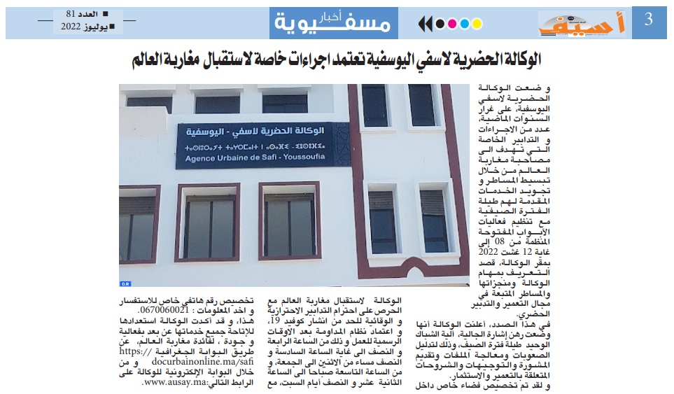 أسيف – الوكالة الحضرية لأسفي اليوسفية تعتمد اجراءات خاصة لإستقبال مغاربة العالم